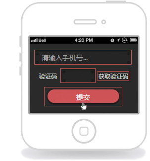 1.填写手机号码,点击获取验证码,这时您的手机会收到一条验证短信,然后填写验证码,提交。